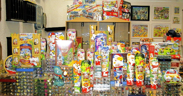 ![]() | Besonders groß ist der Anteil an Figuren aus Überraschungseiern. Davon stehen gegenwertig mehrere tausend bereit. Eingefleischte Sammler legen schon mal ein paar 100 Euro auf dem Tisch, um die Favoriten für Ihre eigene Sammlung zu erwerben. Andere Ü-Eier-Figuren sind selbstverständlich deutlich preiswerter. |